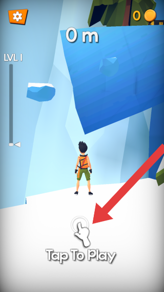 1、呈现的是游戏初始关卡LVL1场景,玩家可点击TapToPlay开始游戏,准备在冰雪地形攀爬。
