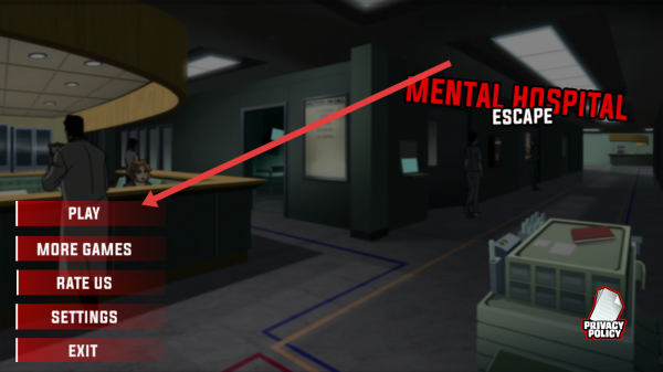 1、在游戏主页面,点击PLAY按钮,进入Mental-Hospital-Escape游戏,开启精神病院逃脱冒险。
