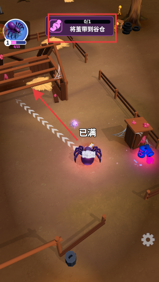 1、游戏中关注任务提示,如将茧带到谷仓,操控蜘蛛沿指引路线移动,运送茧至指定地点。