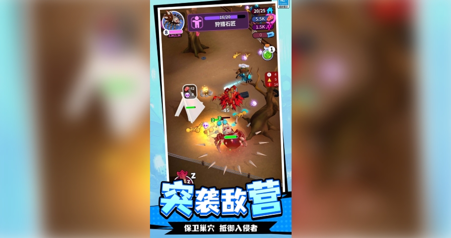 3、面对保护你的巢穴免受讨厌的外星人的伤害!任务,操控蜘蛛在巢穴附近攻击外星人,守护巢穴安全。