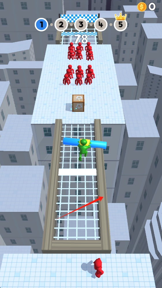 1、推敌前进:在游戏中操控角色,拿起木棍将攻击自己的小人推下楼,扫清前进道路上的障碍,朝着终点奋力奔跑。