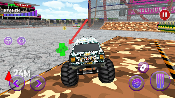 2、在驾驶卡车时,如果血量不健康可以行驶至绿色十字标识处,拾取该道具恢复生命值。