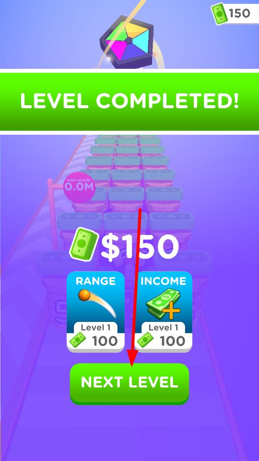 3、完成Level1后点击“NEXT LEVEL”进入下一关,关卡难度有明显提升,可用闯关所得金币升级炮台属性助力顺利闯关。