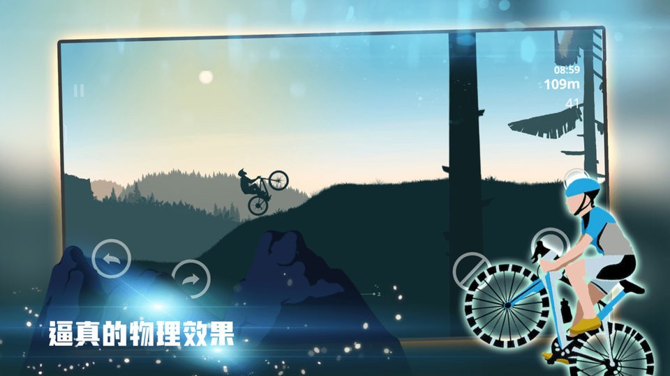 3、冲过终点线完成赛道挑战,根据动作评分与完成时间获取奖励,解锁难度更高的山地地图与性能更强的自行车,开启新的竞技征程。