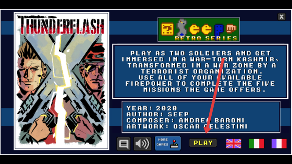 1、在游戏初始界面点击PLAY,进入Thunderflash,化身为士兵,投身战火纷飞的克什米尔战区执行任务。