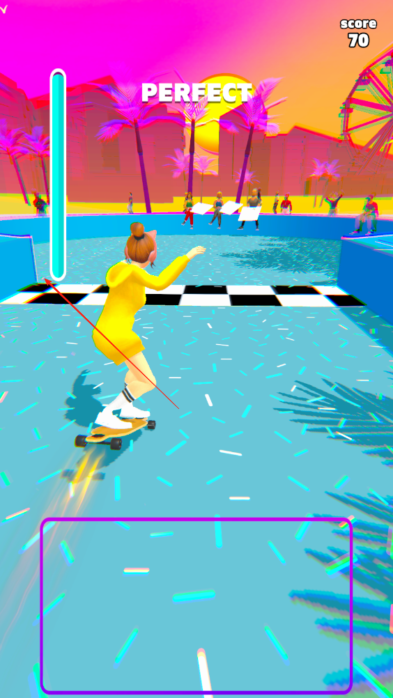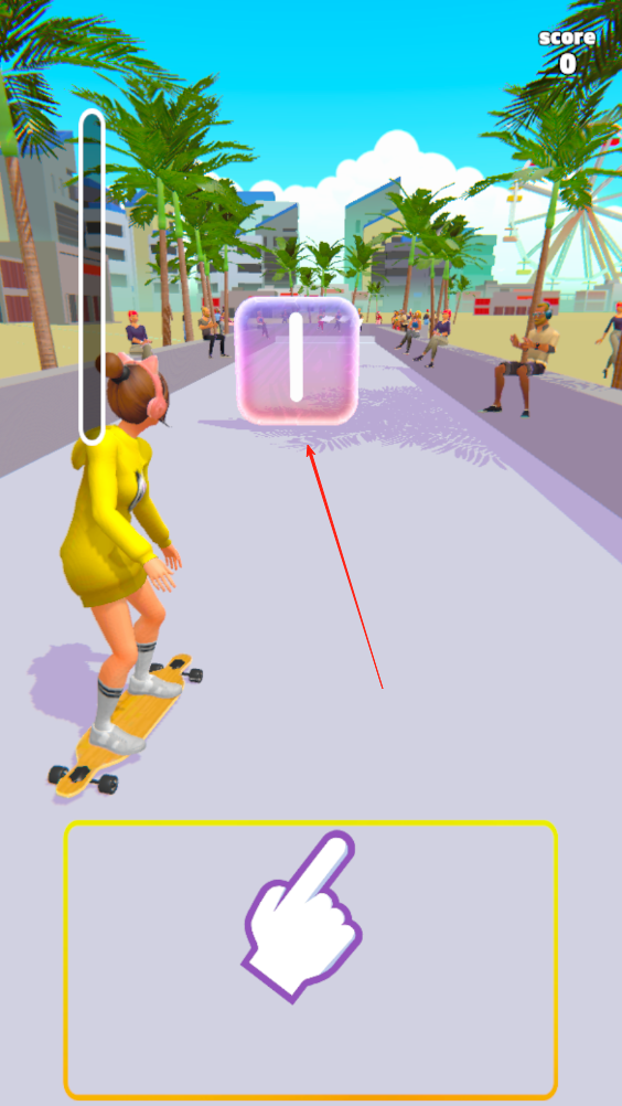 2、当画的线条足够完美,左边的进度条满的时候会加速,通过点击控制滑板加速前进的方向,向前方冲刺。