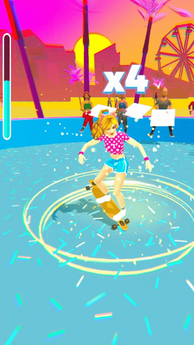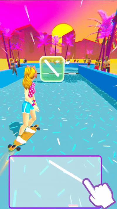 2、动感闯关体验:滑板运动本身充满活力,配合赛道的起伏和障碍物的躲避动作,让整个闯关过程动感十足,仿佛亲身参与滑板运动,感受速度与技巧的结合。