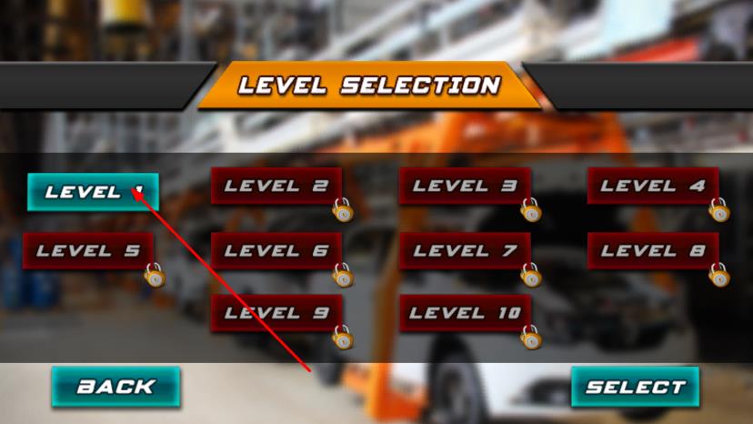 1、在关卡选择界面点击LEVEL1,进入汽车工厂关卡,开始汽车组装任务,屏幕显示倒计时。