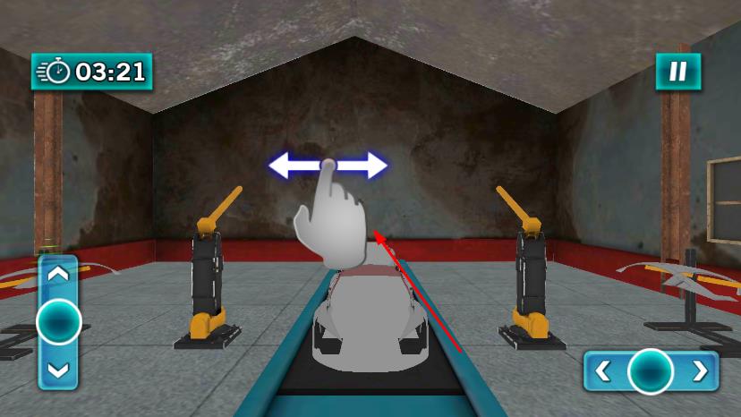 2、通过屏幕两侧的方向按钮移动汽车部件位置,按提示用手指滑动操作,将部件精准放置到对应位置进行组装。