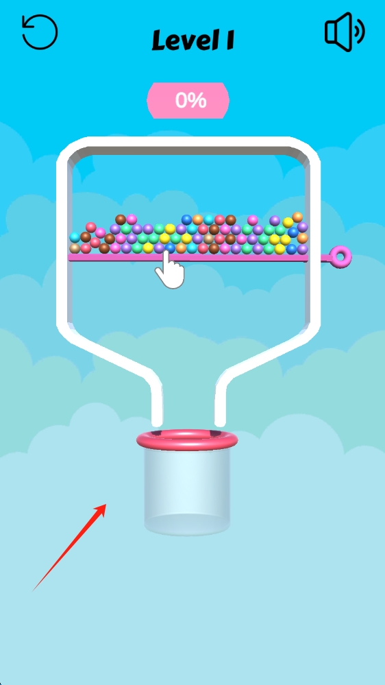 2、彩珠下落时,确保轨道无阻挡,持续点击或按住,控制彩珠顺畅流入容器,滑动移开棍子。