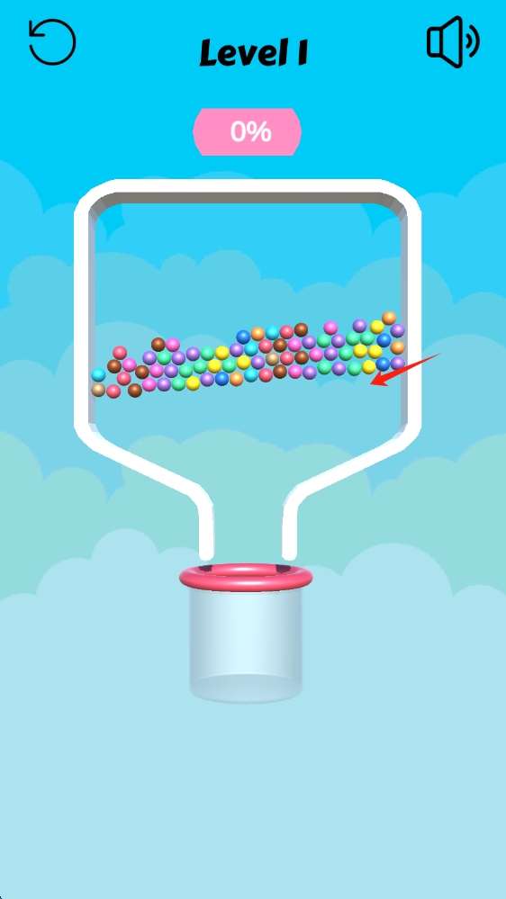 1、进入Level 1,点击屏幕释放彩珠,让彩珠沿轨道落入容器,开始填充挑战,点击开始游戏。