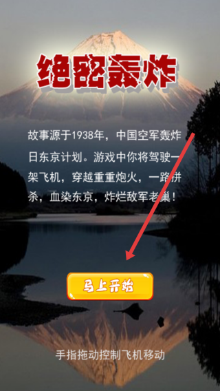 1、在游戏的主页面,点击马上开始按钮,进入绝密轰炸游戏,驾驶飞机执行1938年轰炸日东京的任务。