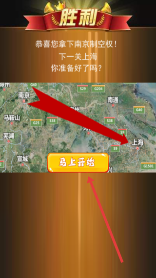 3、在拿下南京制空权后,根据指示,通过点击马上开始按钮,准备进入下一关上海的战斗征程。
