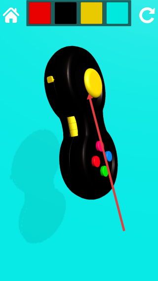 3、玩手柄玩具,操作彩色按钮、黄色部件,旋转或者用按压互动,完成玩法,解锁新内容。