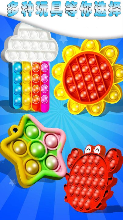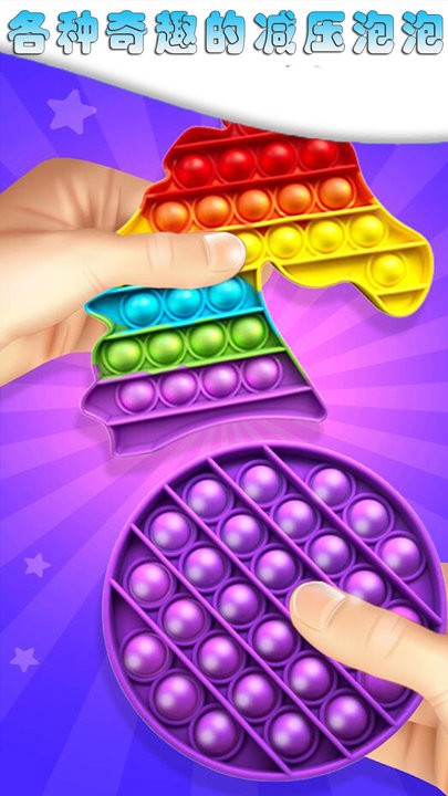 3、益智解压兼顾成长助力:让孩童在玩气泡玩具获取欢乐的同时,培养兴趣爱好并锻炼思维能力,逼真舒适的音效则帮助所有玩家放松身心消除压力,实现多重价值。
