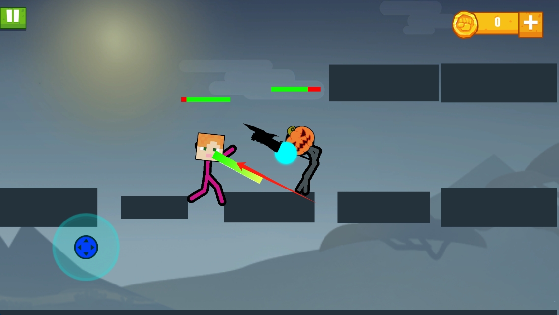 3、灵活走位攻防:战斗时自由移动、躲闪陷阱与机关,通过反复跳跃寻找战机,结合道具使用,全方位展现格斗技巧,击败对手赢得胜利。