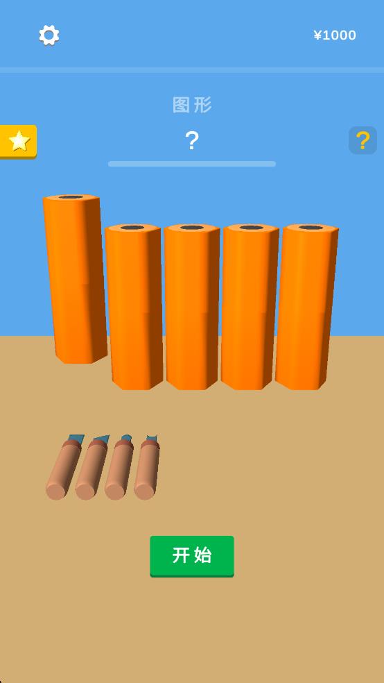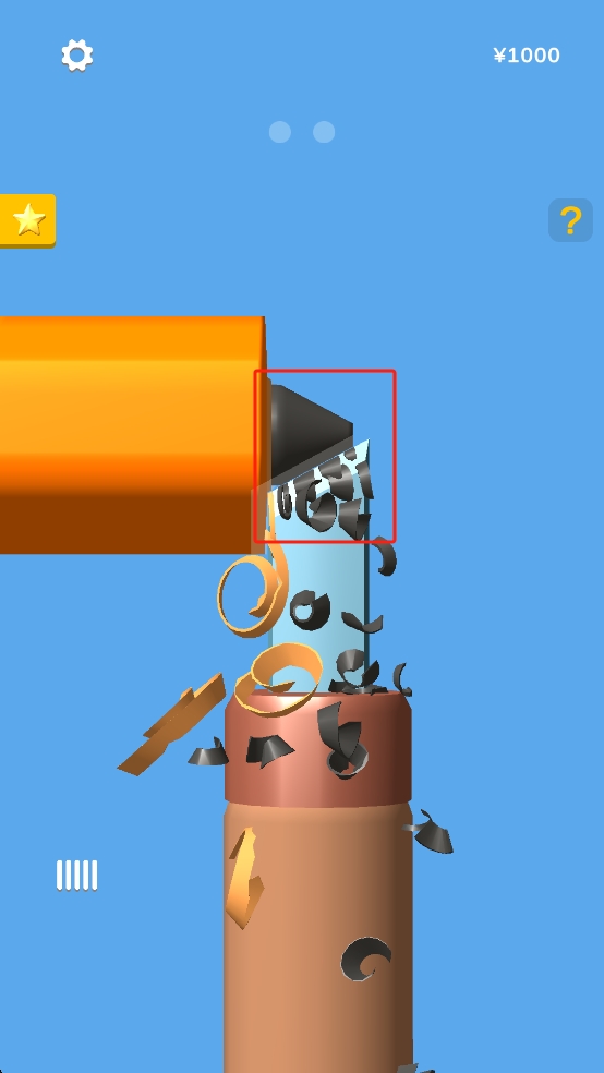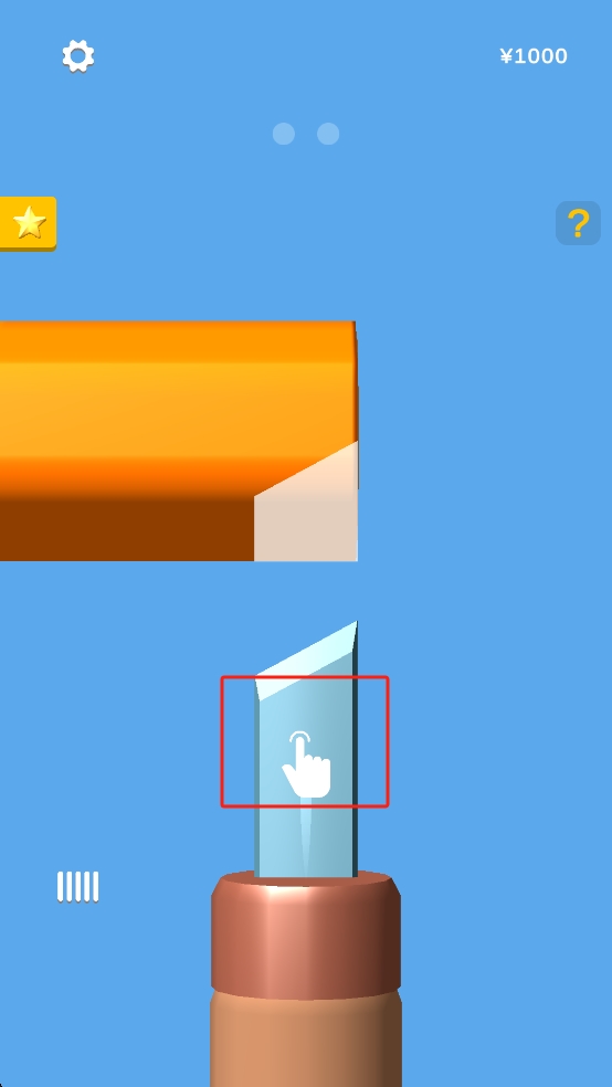 1、开局我们需要留意屏幕上手指标识指向的蓝色刀片,点击该刀片启动切削功能,开启橙色笔杆的塑形流程。