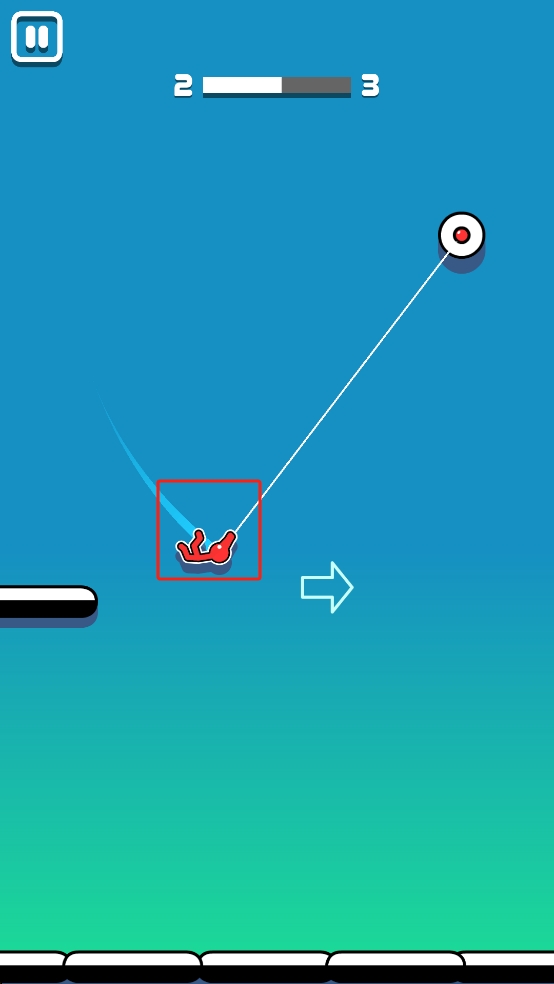 3、成功抵达黑白方格图案的终点后,点击界面下方的白色播放按钮,即可进入第二关,迎接更复杂的钩索移动挑战。
