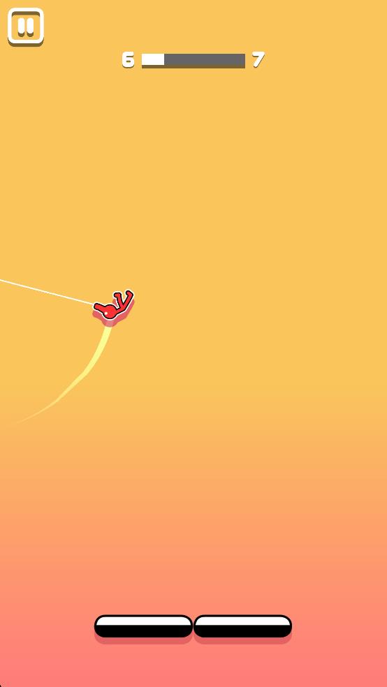2、钩子勾住目标后,火柴人随钩子摆动,需借助摆动惯性,灵活调整身体姿态,朝着右侧平台的落点方向,平稳且精准地移动。