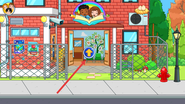 2、进入游戏后,来到孤儿院大门前,点击带有向上箭头的标识,进入孤儿院内部区域继续探索。