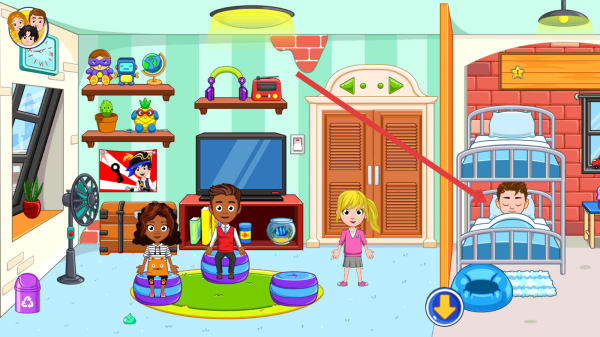 1、在游戏初始界面点击播放按钮,进入My-City游戏中的孤儿院场景,开启新的探索之旅。