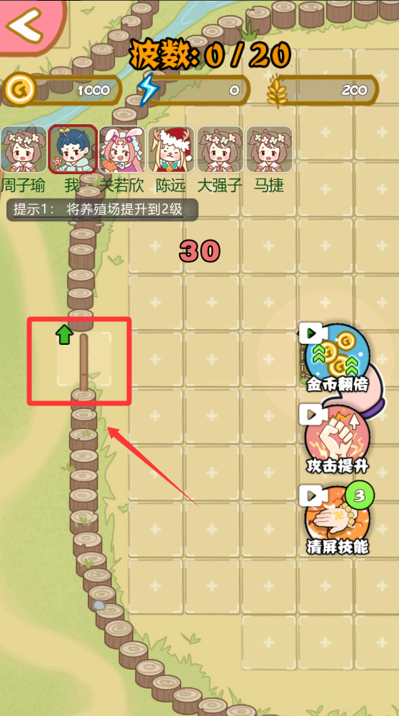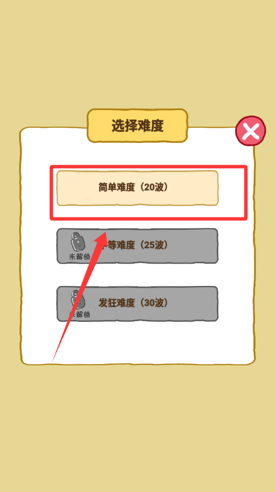 2、先挑战一下简单难度级别20波。