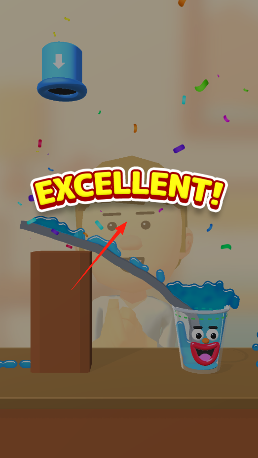 3、成功引导水流后,界面显示EXCELLENT,水流装满杯子,角色获得奖励,解锁新关卡或奖励,通过完成挑战,体验解谜成功的成就感,继续后续关卡的倒水挑战。