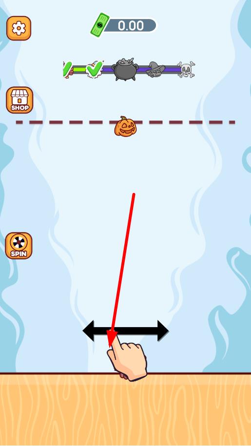 1、选择初始关卡,跟随引导滑动屏幕练习投掷基础魔物,尝试让两只相同魔物接触完成首次融合,为之后的融合打下基础。