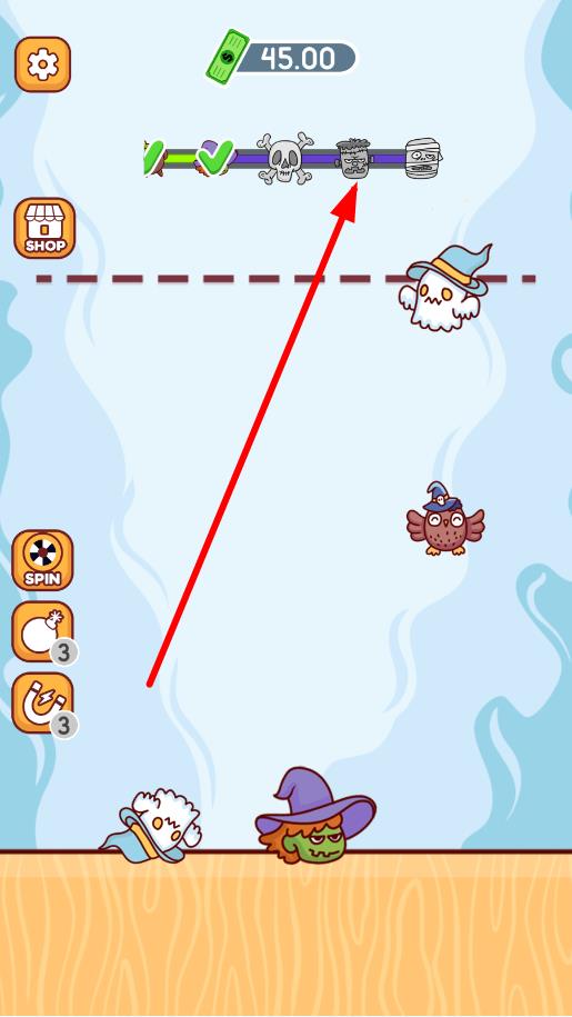 2、根据关卡内魔物的分布和目标要求,调整投掷的角度和力度,让魔物精准接触并融合,升级到更高等级的魔物。