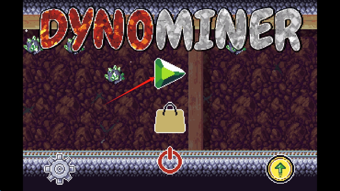 1、打开DynoMiner,点击绿色三角,进入矿车冒险,准备挖掘矿石,挑战高分,点击开始游戏。