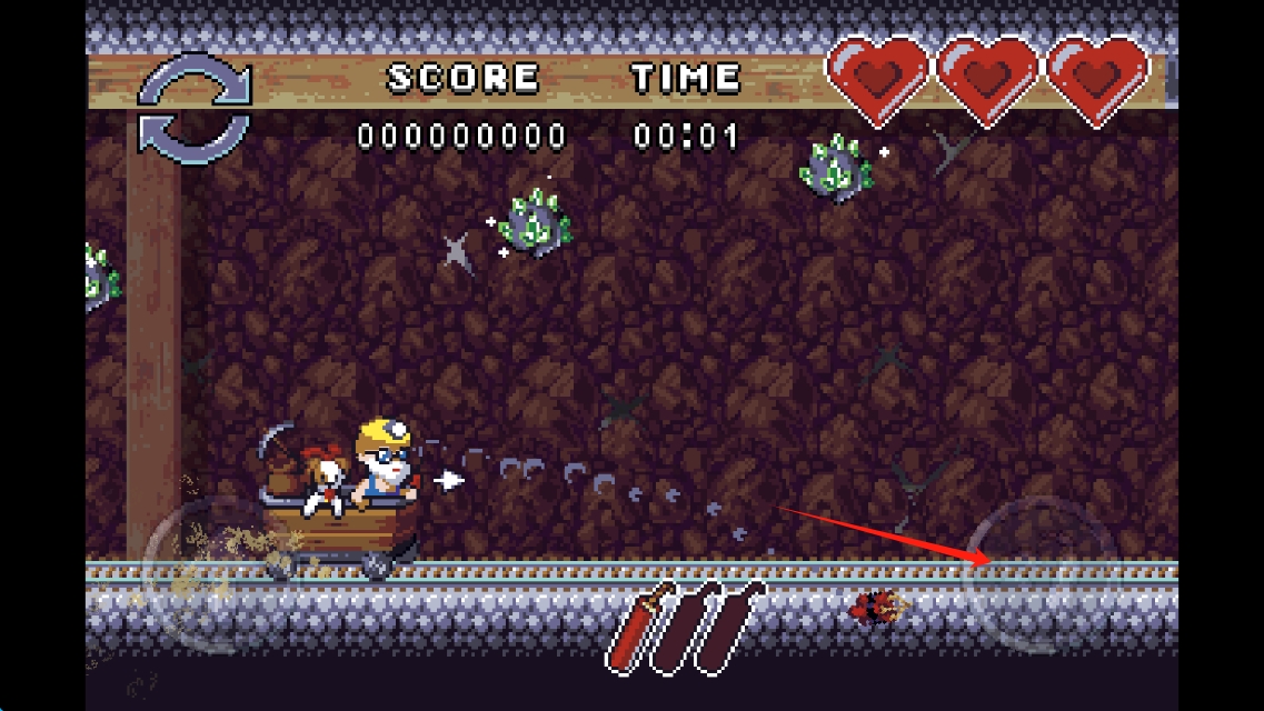 1、矿工闯关操作:控制小矿工在矿山场景中前进,通过简单操作躲避障碍物与陷阱,同时使用武器攻击敌人,确保顺利前行,考验反应与操作能力。