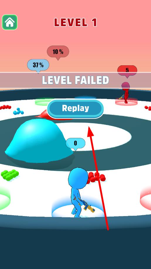 3、当进度条满格、完成当前关卡目标后,解锁下一关,需要跟其他玩家进行竞争,如果速度太慢导致失败了,则需要重新游玩。