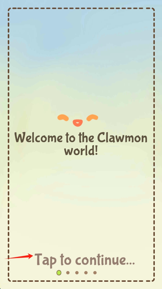 1、进入Clawmon世界,点击Tap to continue,开启萌宠抓取之旅,探索奇妙玩法,点击继续。