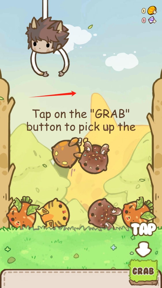 2、游戏中,移动爪子对准萌宠,点击GRAB,精准抓取,收集多样可爱萌宠,滑动移动人物。