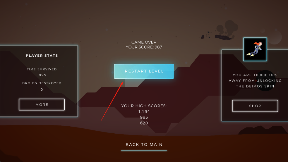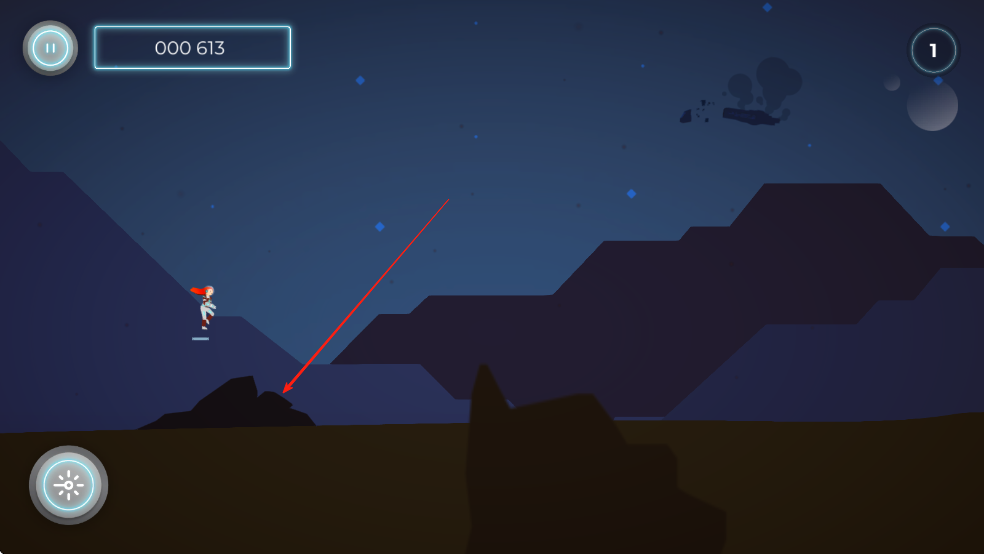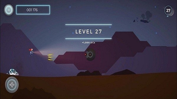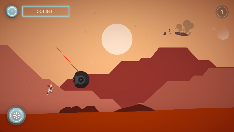 1、控制角色持续跑酷:操控角色在火星场景中不断向前跑酷,躲避随机出现的障碍物,通过灵活的移动和反应力保持奔跑节奏,尽量延长跑酷距离。