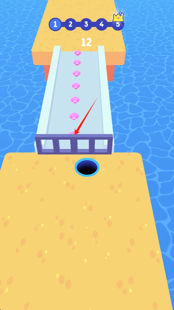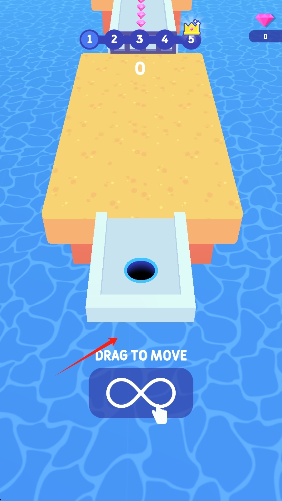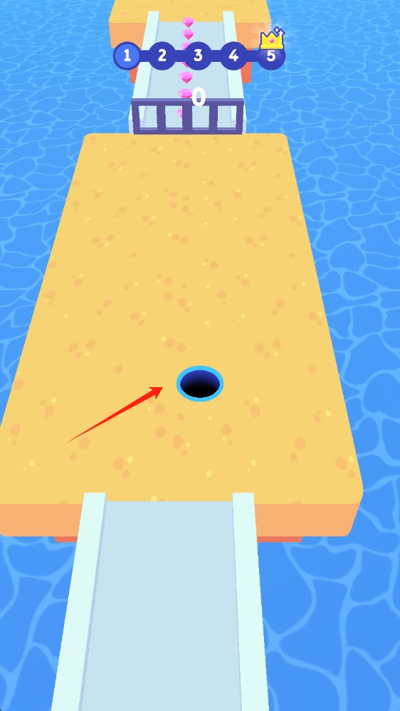 2、遇到轨道上的障碍,提前调整黑洞位置,让其顺利通过通道,继续收集钻石,滑动移动人物。
