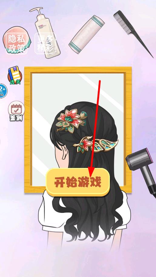 1、进入游戏主界面,点击中间醒目的“开始游戏”按钮,即可开启为客人美容护理的流程,开启趣味美容挑战。