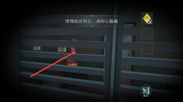3、藏好后,遇刀怪物在附近的提示,保持静止别点离开,等提示消失再探索找逃生口。