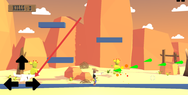 2、善用场景中的岩石、仙人掌等物体,在敌人发起攻击时,及时躲至掩体后规避伤害,时刻关注界面左上角KILLS。