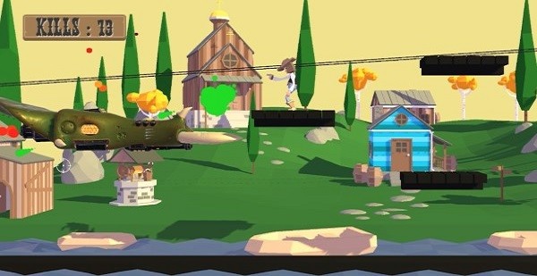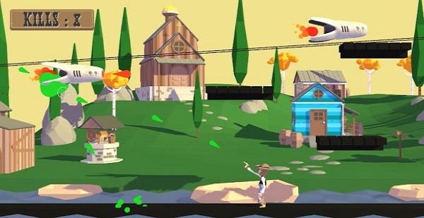 1、瞄准射击摧毁外星飞船:操控牛仔对准关卡中的外星飞船,通过精准瞄准完成射击,将飞船逐一击落以清除当前区域的威胁,为推进关卡创造条件,感受射击的爽快感。