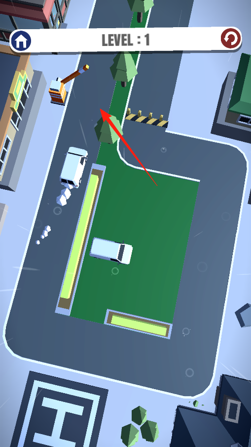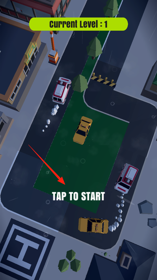 1、进入Level1场景,看到TAP TO START提示,点击该提示,启动车辆移动,开始规划车辆行驶路线,通过操作,体验基础的关卡启动玩法,感受城市道路挑战的开启。