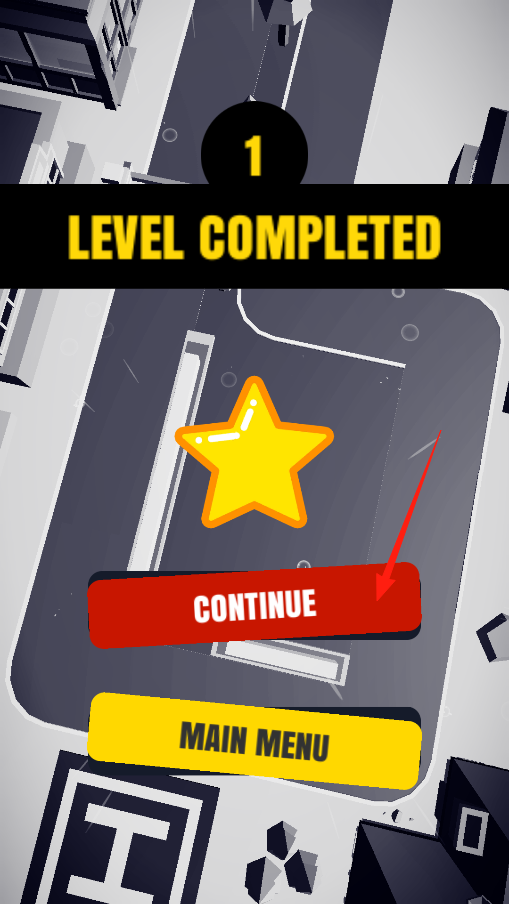 3、成功通关后,进入LEVEL COMPLETED界面,点击CONTINUE按钮,进入下一关卡,延续游戏进程,通过选择继续,体验更多道路挑战,解锁新关卡内容,感受持续挑战的成就感。