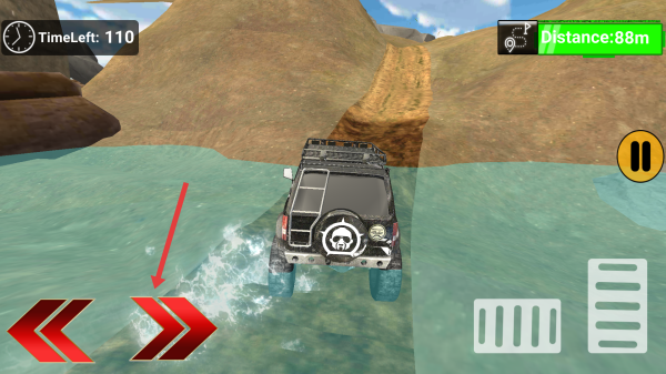 2、游戏过程中,右侧按键控制车辆加速,左侧箭头按键调整行驶方向,灵活应对复杂山地地形。