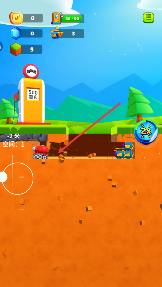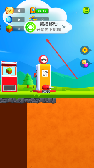 1、进入游戏,按提示,拖拽移动开始向下挖掘,操控钻机在加油站旁地面开启挖掘。