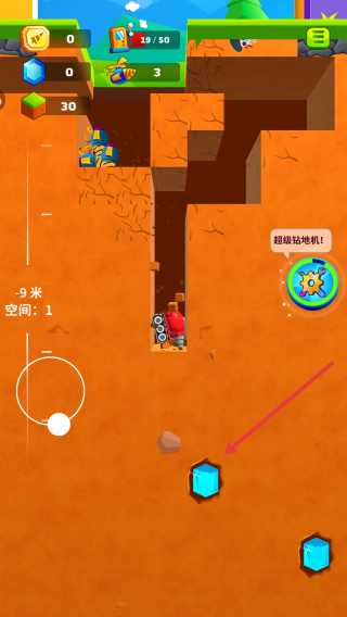 3、深入地下后,瞄准蓝色晶体等目标,调整钻机移动,获取资源,推进挖掘冒险进程。