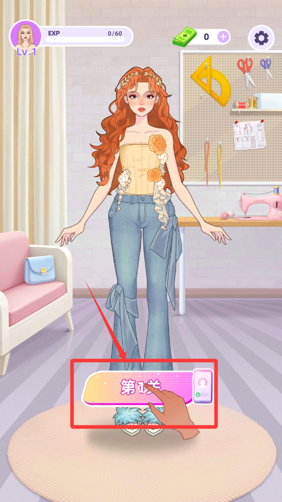 1、点击屏幕中间的关卡一进入下一步。
