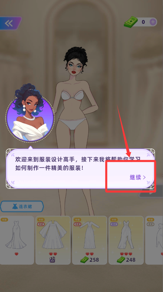 2、带领你怎么制作服装点击继续按钮操作下一步。
