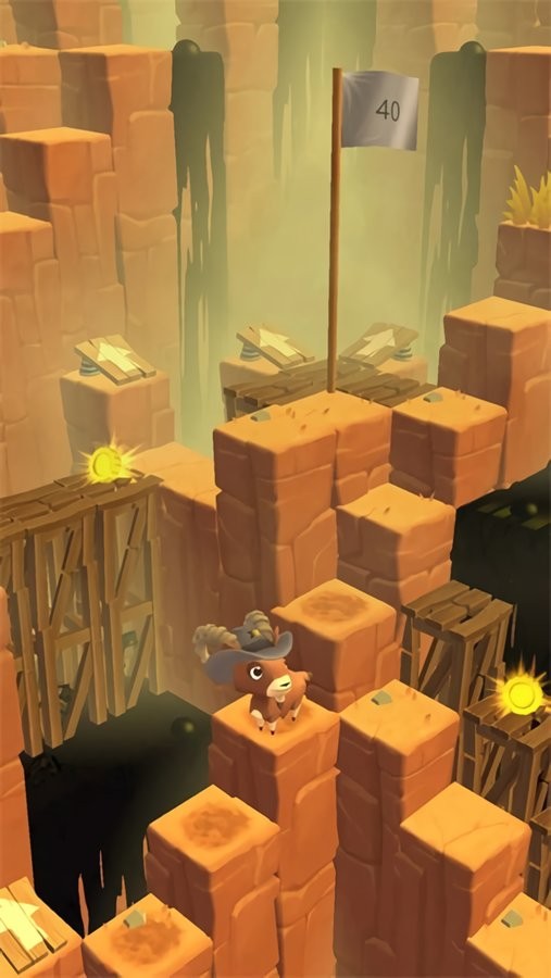 3、萌系山羊形象:山羊角色设计呆萌可爱,跳跃时的动作憨态可掬,搭配轻快的背景音乐,让紧张的闯关过程充满轻松氛围,适合全年龄段玩家。
