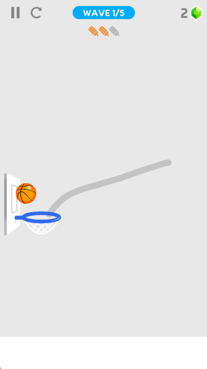 2、闯关中途,随着难度提升,需合理规划三条线的布局,利用墙面、地面反弹调整篮球路径,避开障碍并精准瞄准篮筐,尝试最优画线策略。