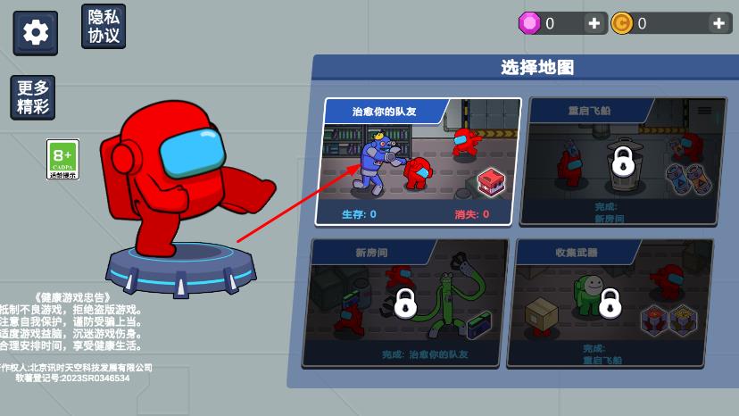 1、在主界面点击治愈你的队友等地图,进入游戏界面,有队友一起寻找宝箱。